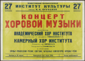 Концерт хоровой музыки : исполнители: Академический хор института, Камерный хор института, 27 декабря 1979 г. : [афиша] / Ленинградский государственный институт культуры им. Н. К. Крупской. - Электронные данные (2 файла, JPEG : 33,1 МБ). -(Санкт-Петербург: Президентская библиотека , 2018). - Режим доступа: интернет-портал Президентской библиотеки. Заглавие с экрана. Электронная репродукция афиши: [Ленинград] : Типография № 2 Ленуприздата, 1979. 1 лист : цв. шрифт. Местонахождение: Санкт-Петербургский государственный институт культуры. Копирование пользователями не разрешается.