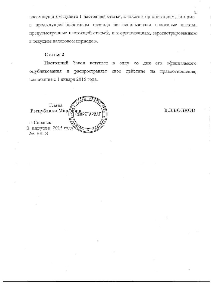 О внесении изменения в статью 3 Закона Республики Мордовия "О налоге на имущество организаций" : Закон Республики Мордовия от 03.08.2015 № 59-З. - Электронные текстовые данные (2 файла). -(Москва: ГлавНИВЦ УДП РФ , 2018). - Режим доступа: интернет-портал Президентской библиотеки. Загл. с титульной страницы. Электронная версия:Закон Республики Мордовия от 03.08.2015 № 59-З "О внесении изменения в статью 3 Закона Республики Мордовия "О налоге на имущество организаций".