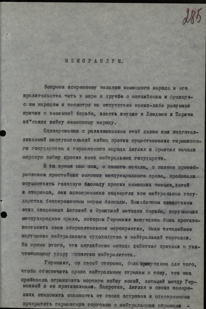| Заголовок | Меморандум правительства Германии правительству Норвегии в связи со вступлением германских войск на территорию этой страны |