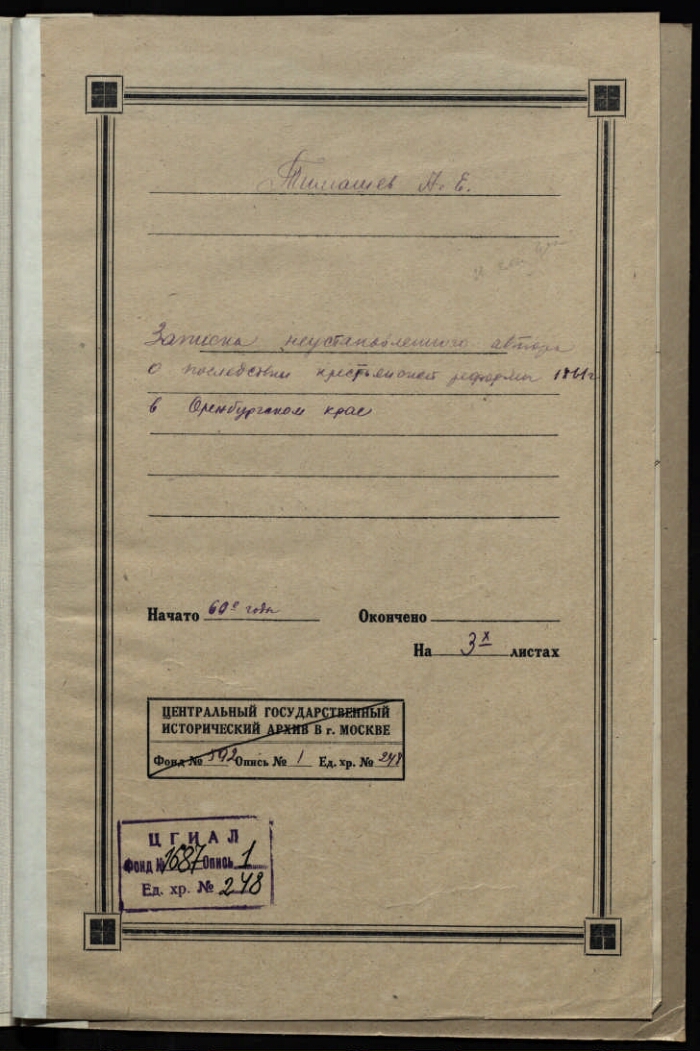 Заголовок | Записка неустановленного автора о последствии крестьянской реформы 1861 года в Оренбургском крае |