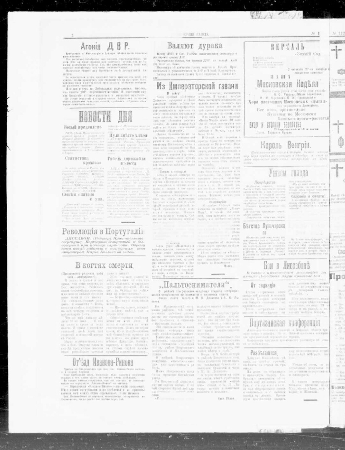 Вечерняя газета. - 1921, № 1 (24 июня) -. -Владивосток, 1921-1922. - Издатель и редактор В. Н. Иванов. Ежедневно. - Издавалась с июня 1921 г. по октябрь 1922 г.