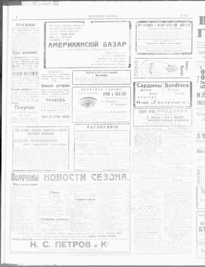 Вечерняя газета. - 1921, № 1 (24 июня) -. -Владивосток, 1921-1922. - Издатель и редактор В. Н. Иванов. Ежедневно. - Издавалась с июня 1921 г. по октябрь 1922 г.