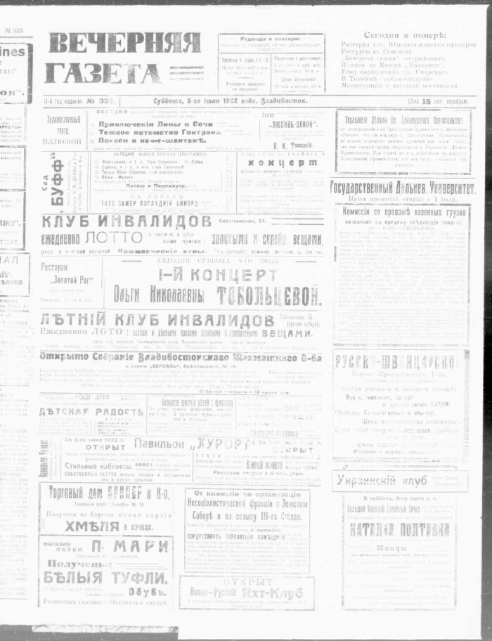 1922, № 335 (8 июля). - 1922. -4 с.. -