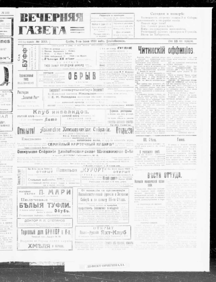 1922, № 332 (5 июля). - 1922. -4 с.. -