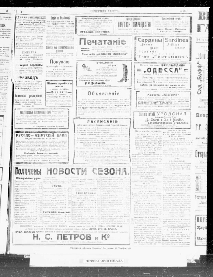 Вечерняя газета. - 1921, № 1 (24 июня) -. -Владивосток, 1921-1922. - Издатель и редактор В. Н. Иванов. Ежедневно. - Издавалась с июня 1921 г. по октябрь 1922 г.