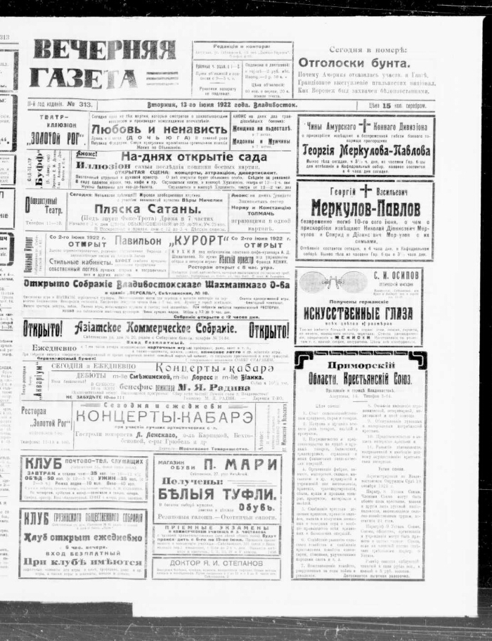 1922, № 313 (13 июня). - 1922. -4 с.. -