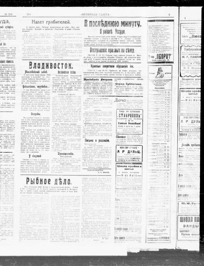Вечерняя газета. - 1921, № 1 (24 июня) -. -Владивосток, 1921-1922. - Издатель и редактор В. Н. Иванов. Ежедневно. - Издавалась с июня 1921 г. по октябрь 1922 г.