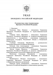 О должностных лицах Администрации Президента Российской Федерации : Указ Президента Российской Федерации от 22 июня 2018 года № 355. - Москва, 2018. -2 листа. - Режим доступа: интернет-портал Президентской библиотеки. В конце текста подпись: Президент Российской Федерации В. Путин. Место и дата подписания: Москва, Кремль, 22 июня 2018 года, № 355. Электронная версия правого акта (2 файла, JPEG : 1,8 МБ). Опубликован в изданиях: Собрание законодательства Российской Федерации от 2018 г., № 26, ст. 3836 ; Официальный интернет-портал правовой информации (www.pravo.gov.ru) от 22.6.2018 г. (ст. 0001201806220046).