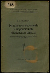 Финансовое положение и перспективы беженской школы : (Докл. на Втором Пед. съезде, 10 июля 1925 г.) / Рос. зем.-гор. ком. помощи рос. гражданам заграницей. - Прага : Легиография, 1925. -13, [3] с. : диагр.. - Отд. отт. из "Бюллетеня Педагогического бюро" № 9.