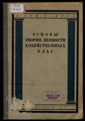 Основы теории ценности хозяйственных благ / Пер. с нем. А. Санина. - [Ленинград] : Прибой, 1929. -XVI, 194, [1] с. : ил., табл.. - Библиогр. в тексте и подстроч. примеч.