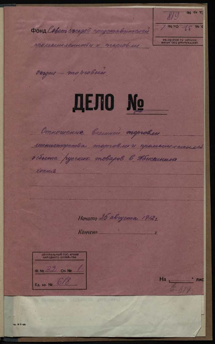 Заголовок | Отношение отделения внешней торговли Министерства торговли и промышленности о сбыте русских товаров в Абиссинию |