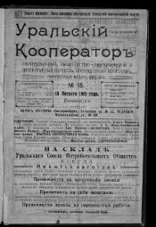 Уральский кооператор : Ежемес. лит.-экон. журн., посвященный вопросам кооперации всех видов, в частности кооперативному движению на Урале. - Екатеринбург : Правл. О-ва потребителей, 1910-1919. - Издательства: 1910 № 1 - 1914 № 18 Екатеринбургское о-во потребителей 1914 № 19 - 1915 № 18 Торгово-пром. т-во кооперативов Пермской губ. 1915 № 19/20 - 1919 Уральский союз потреб. о-в. Подзаг.: 1910/1911 Ежемес. лит.-экон. журн., посвященный вопросам кооперации всех видов, в частности кооперативному движению на Урале1912 № 1/2 - 1922 Двухнед. обществ. лит.-экон. журн., посвященный вопросам кооперации всех видов, в частности кооперативному движению на Урале1912 № 23/24 - 1916 № 9 Двухнед. обществ.-экон. и лит. журн., посвященный вопросам кооперации всех видов 1916 № 10 - 1919 Еженед. ... (с незначит. изм.).