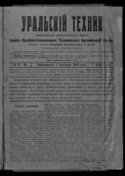 Уральский техник : Ежемес. журн. : Орган Уральского межсекц. бюро инженеров и техников Уралпрофсовета. - Свердловск, 1907-1932. - Места издания: 1907-1924 № 1 Екатеринбург 1924 № 2 - 1932 Свердловск. Издательства: 1907-1911 № 4/5 В.М. Быков1911 № 6/7 - 1912 № 3 С.И. Литвинов 1912 № 4/5 - 1916 Т.Ф. Протасов 1917-1918 Союз. проф. тех. организаций Урала 1928 № 7 - 1939 ОМБИТ. Надзаг.: 1924-1928 Урал. обл. межсекционное бюро инж.-техн. сил при Урал. проф. совете. В 1908-1918 гг. журн. выходил в двух отделах: Отдел профессиональных и Отдел технический. Подзаг.: 1907-1918 Ежемес. техн. и проф. журн.1924-1928 Ежемес. журн.192?-1932 ... Орган Урал. межсекционного бюро инженеров и техников Уралпрофсовета.