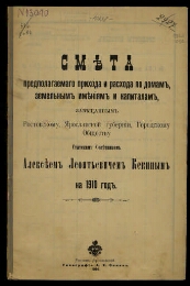 Смета предполагаемого прихода и расхода по домам, земельным имениям и капиталам, завещанным Ростовскому, Ярославской губернии, Городскому обществу Статским Советником Алексеем Леонтьевичем Кекиным... - Ростов-Ярославский : [Б. и., 1908-1917]. -