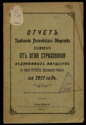 Отчет Правления Ростовского общества взаимного от огня страхования недвижимых имуществ в г. Ростове, Ярославской губ... - Ростов-Ярославский : [Б. и., 1889-1916]. - Загл. части вып. незначительно изменено.