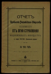Отчет Правления Ростовского общества взаимного от огня страхования недвижимых имуществ в г. Ростове, Ярославской губ... - Ростов-Ярославский : [Б. и., 1889-1916]. - Загл. части вып. незначительно изменено.