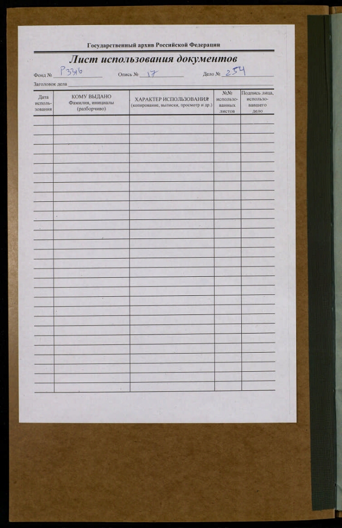 | Шифр хранения | ГА РФ. 3316 / 17 / 254 |