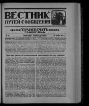 Вестник путей сообщения : Орган Нар. ком. путей сообщения. - Москва, 1922-1926. - В части вып. журн. будет выходить под загл. "Транспортная газета". Изд-ва: 1923-1925 № 13 Транспечать; 1926 Ред. офиц. изд. НКПС.