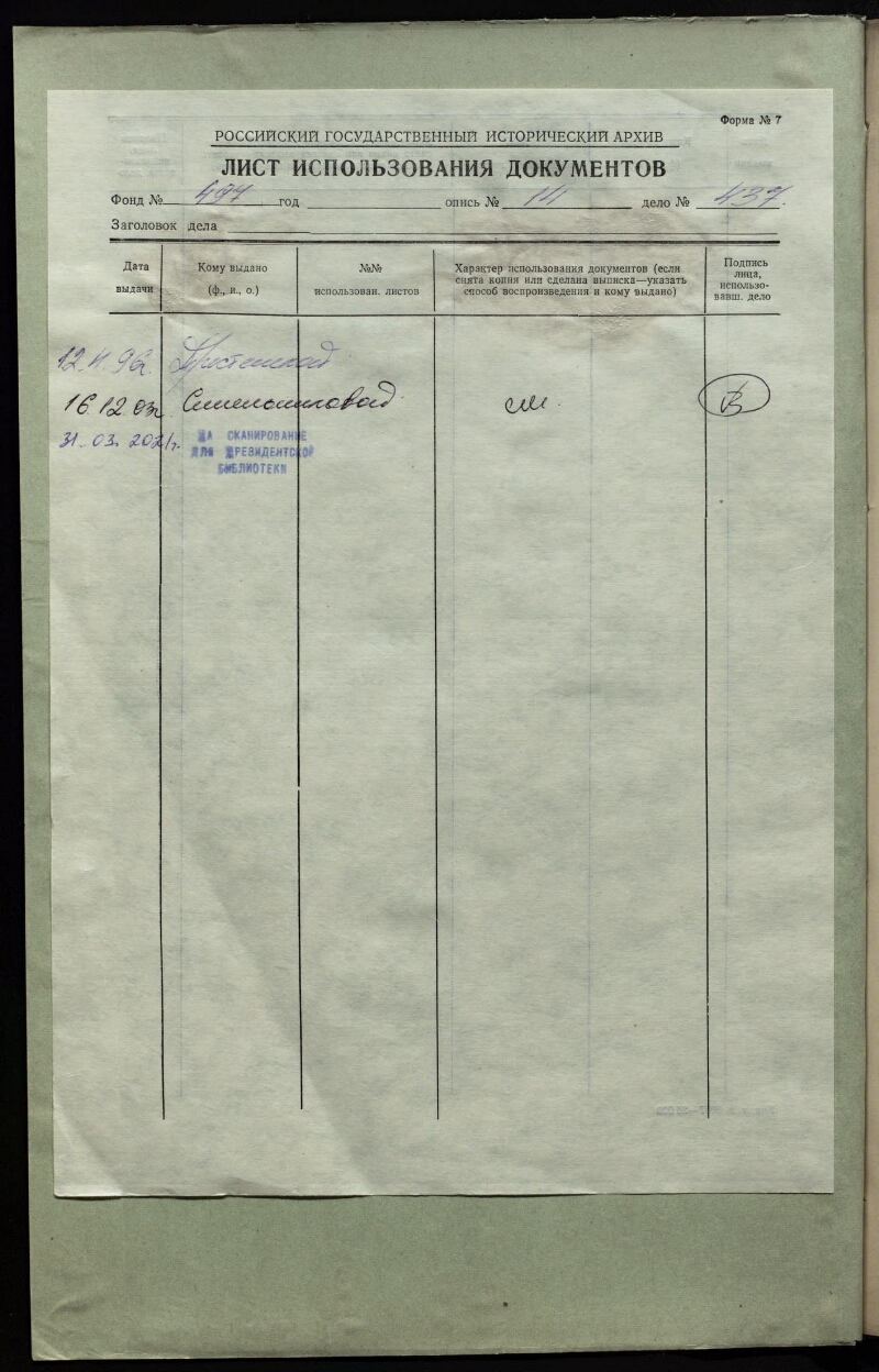 | Организация-создатель записи | РГИА |