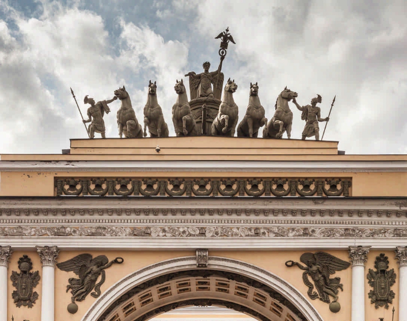 Арка Главного штаба на Дворцовой площади (1819-1828, архитектор К. И. Росси) [Изображение] : [фотоальбом] / фот. А. М. Мелентьев. - Электрон. дан. (7 файлов : 12 Мбайтов). - Санкт-Петербург, июль 2012. - Режим доступа: сайт Президентской библиотеки имени Б. Н. Ельцина. Изобразительное электронное издание. Общий вид Арки Главного штаба со стороны Дворцовой площади ; Фрагменты Арки Главного штаба со стороны Дворцовой площади ; Фрагменты Арки Главного штаба со стороны Невского проспекта ; Отдельные детали свода Арки Главного штаба; Отдельные детали скульптурного декора Арки Главного штаба