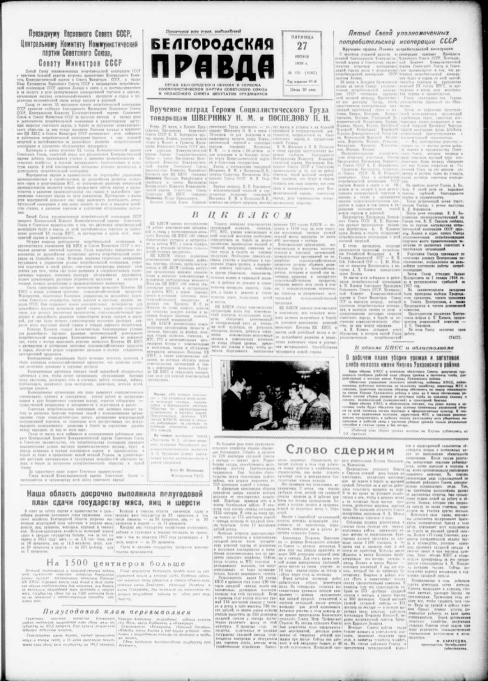 Белгородская правда : областная общественно-политическая газета : орган Белгор. обкома и горкома КПСС и обл. Совета депутатов трудящихся. - Белгород , 1917-