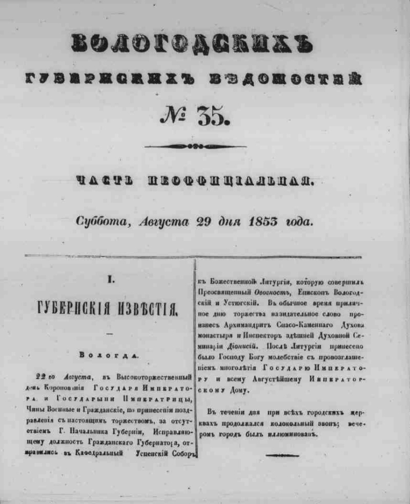 Вологодские губернские ведомости. - Вологда , 1838-1917 |