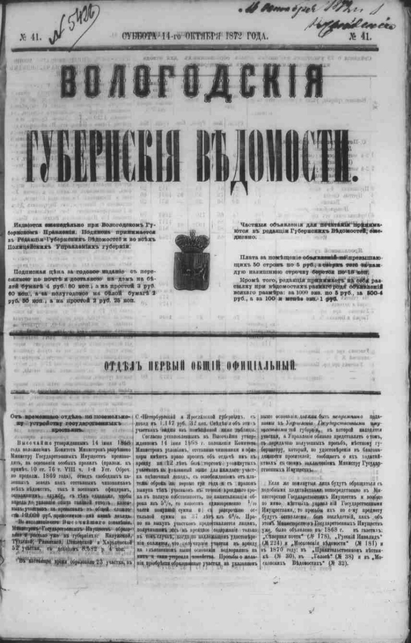 Вологодские губернские ведомости. - Вологда , 1838-1917 |