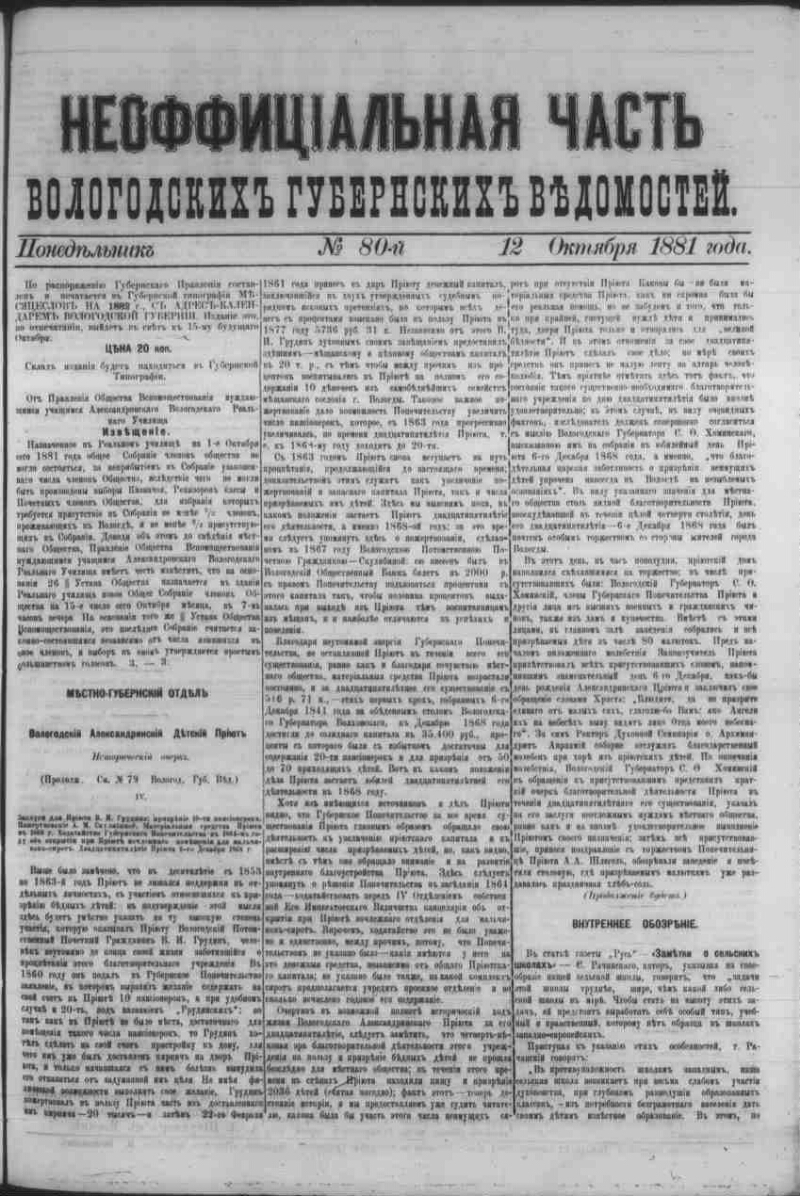 Вологодские губернские ведомости. - Вологда , 1838-1917 |