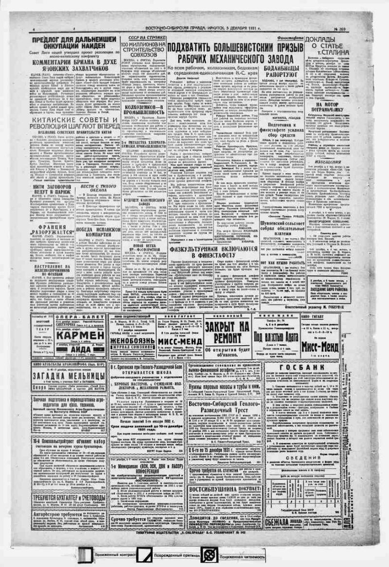 Восточно-Сибирская правда : орган Оргбюро ЦК ВКП(б), Орг. комитета ВЦИКа и Оргбюро ВЦСПС В.-Сибирского края. - Иркутск , 1930- |