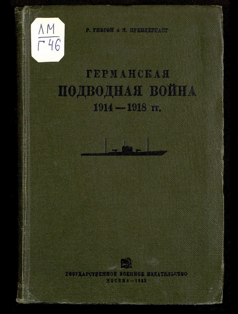 Германская подводная война 1914-1918 гг. : перевод с английского / Р. Гибсон и М. Прендергаст ; со вступительной статьей А. Александрова. - Москва : Государственное военное издательство, 1935. - 315 с., 2 л. карт. : ил., табл. - Дополнительный титульный лист на английском языке. Указатели: с. 301-314. - Библиогр. в подстроч. примеч. и в тексте. - Экз.: с рукоп. помет. в тексте. . - 6000 экз.