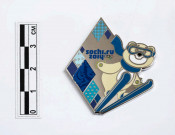 Значок "Белый Мишка. Лыжное двоеборье" : [фотография] / фот. А. Мелентьев. - Электронные данные (1 файл : 1,1 МБ). - Санкт-Петербург : Президентская библиотека имени Б. Н. Ельцина, 2014. - (Олимпийские талисманы). - Режим доступа: интернет-портал Президентской библиотеки имени Б. Н. Ельцина. Заглавие с этикетки на упаковке. Название на официальном сайте ФГУП "Гознак": Значок "Белый мишка. Лыжное двоеборье. Олимпийские талисманы" (http://www.goznak.ru/products/34/). Официальная лицензионная продукция. Лицензиат: ФГУП "Гознак". Использованы материалы сайта интернет-магазина "RUSSMINT" ФГУП "Гознак" (http://russmint.ru/), сайта "Direct Standard", раздел "Значки" (http://detect-standard.ru/znachki/sochi-2014). Копирование пользователями не разрешается. На фотографии: значок из серии "Олимпийские талисманы" с изображением талисмана - Белого Мишки на лыжах (прыжки на лыжах с трамплина). Материал: латунь никелированная, цветные эмали. Штамповка. Размер 44х37 мм. Крепление: цанга. На оборотной стороне - клеймо "ГЗ" (Гознак), логотип "SOCHI 2014". Местонахождение: Из частного собрания. - На лицевой стороне - символическое изображение талисмана - Белого Мишки на лыжах (прыжки на лыжах с трамплина) на фоне орнаментально-художественного оформления ("лоскутного одеяла"), логотип "sochi.ru 2014" и пять олимпийских колец. Преобладающие цвета значка - синий, белый, голубой