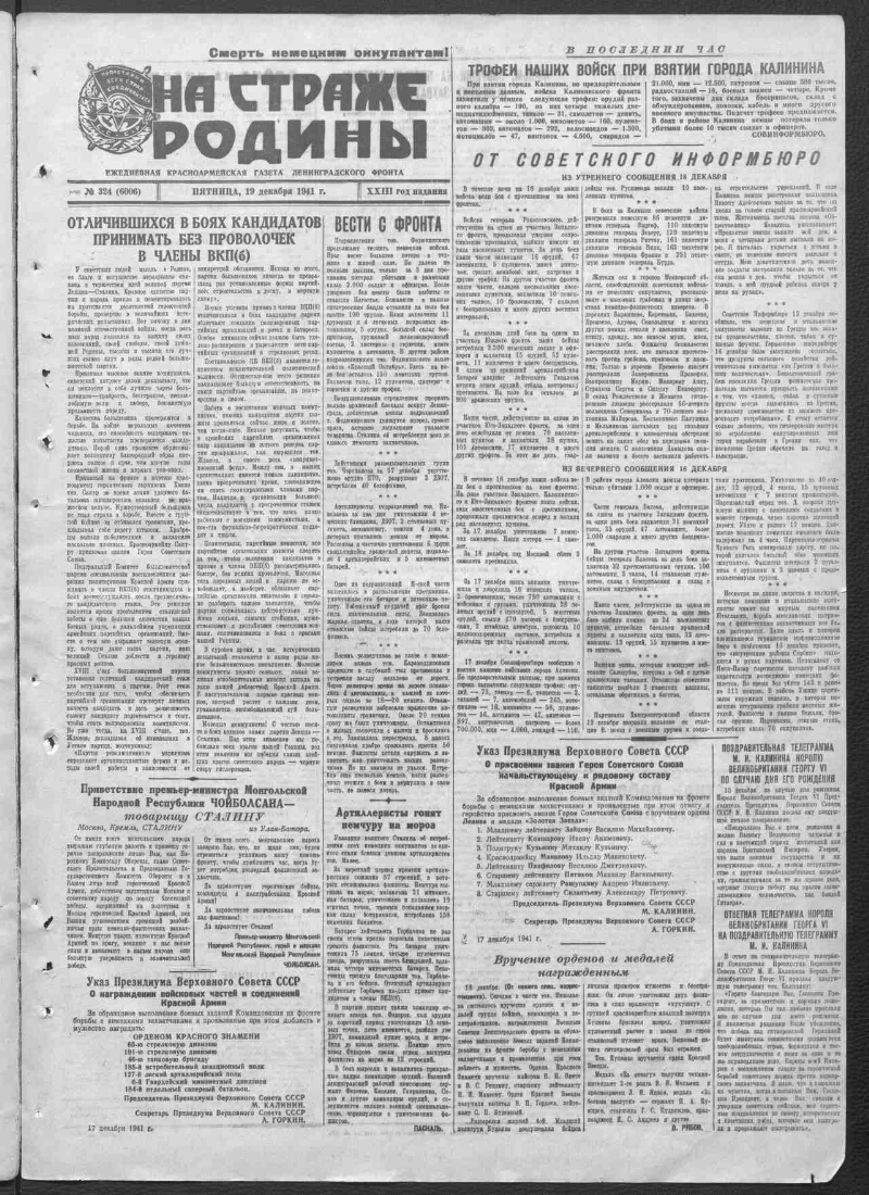1941, № 324 (6006) (19 декабря). - 1941. - 2 c.