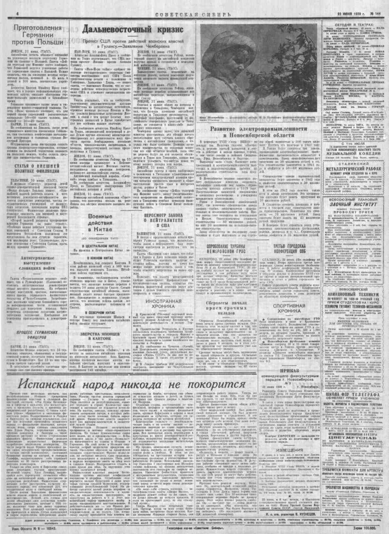 1939, № 144 (5912) (23 июня). - 1939