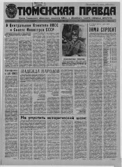 Тюменская правда : орган Тюменского областного и городского комитетов ВКП(б), областного и городского Совета депутатов трудящихся. - Тюмень, 1944-. - До 1 октября 1944 г. выходила под заглавием "Красное знамя". Подзаг.: 1944 - 12 октября 1952 – орган Тюменского областного и городского комитетов ВКП(б), областного и городского Советов депутатов трудящихся ; 15 октября 1952 - 15 января 1963 – орган Тюменского областного и городского комитетов КПСС, областного и городского Советов депутатов трудящихся ; 16 января 1963 - 25 декабря 1964 – орган Тюменских промышленного и сельского обкомов КПСС, областных промышленного и сельского Советов депутатов трудящихся ; 26 декабря 1964 г. – орган Тюменского обкома КПСС, областных сельского и промышленного Советов депутатов трудящихся ; 27 декабря 1964 - 1990 – орган Тюменского областного комитета КПСС и областного Совета депутатов трудящихся ; с 1990 по настоящее время – общественно-политическая газета. Издается с 1923 г.