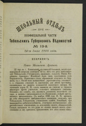 Школьный отдел при неофициальной части "Тобольских губернских ведомостей". - 1907, № 1 (3 сентября) - 1917, № 15 (12 декабря). - Тобольск, 1907, 3 сентября - 1917, [декабрь]. - Выходит как отдельное приложение к неофициальной части "Тобольских губернских ведомостей".