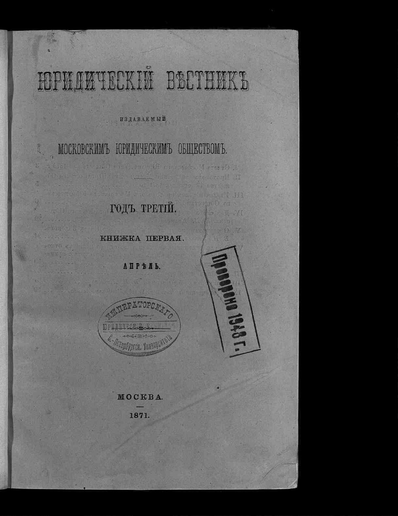 Юридический вестник. Г. 3 1871, кн. 1 (апрель)