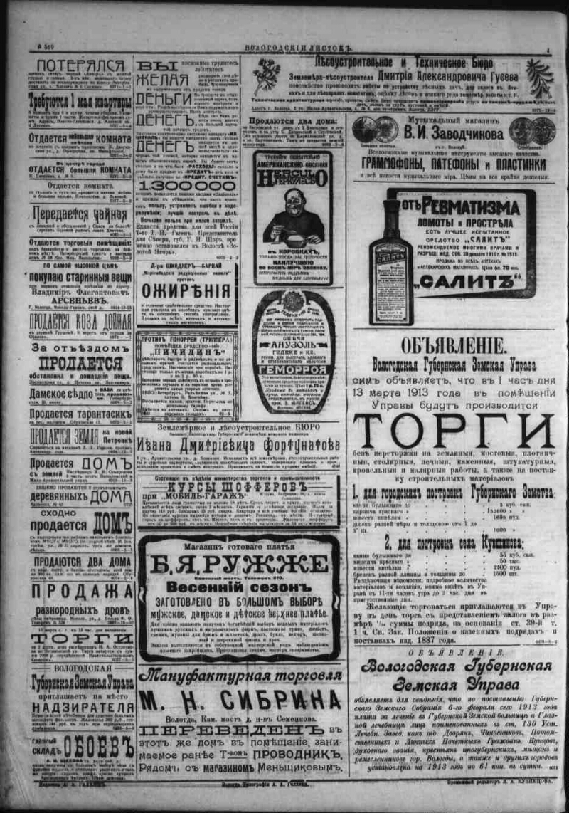 1913, № 519 (10 марта). - 4 с. + прил. (2 с.)
