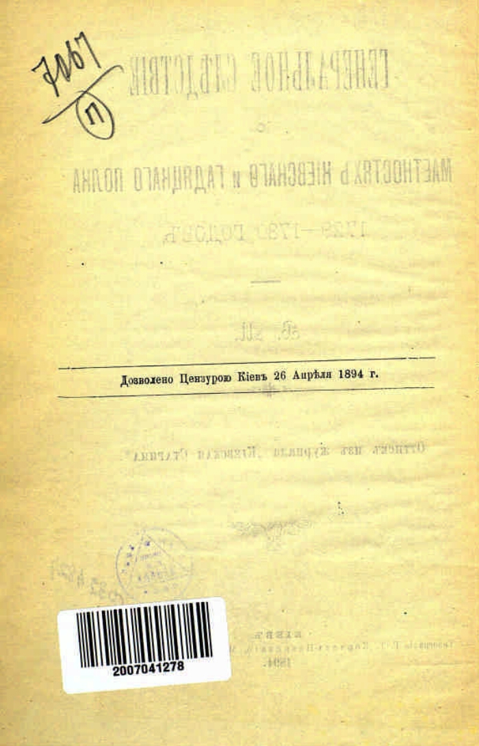 Генеральное следствие о маетностях Киевского и Гадяцкого полка 1729-1730 годов: [Рец.]/ В. М. .- Киев : Тип. Г. Т. Корчак-Новицкого , 1894 .- [2], 11 с. ; 24 см .- Авт. установлен по изд.: Масанов И. Ф. Словарь псевдонимов... М., 1956. Т. 1.