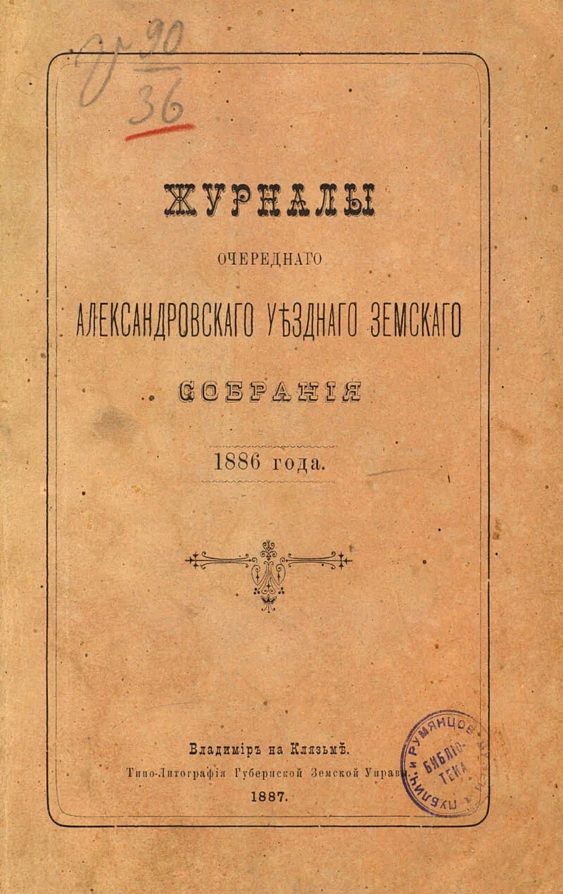 Журналы Александровского уездного земского собрания ...