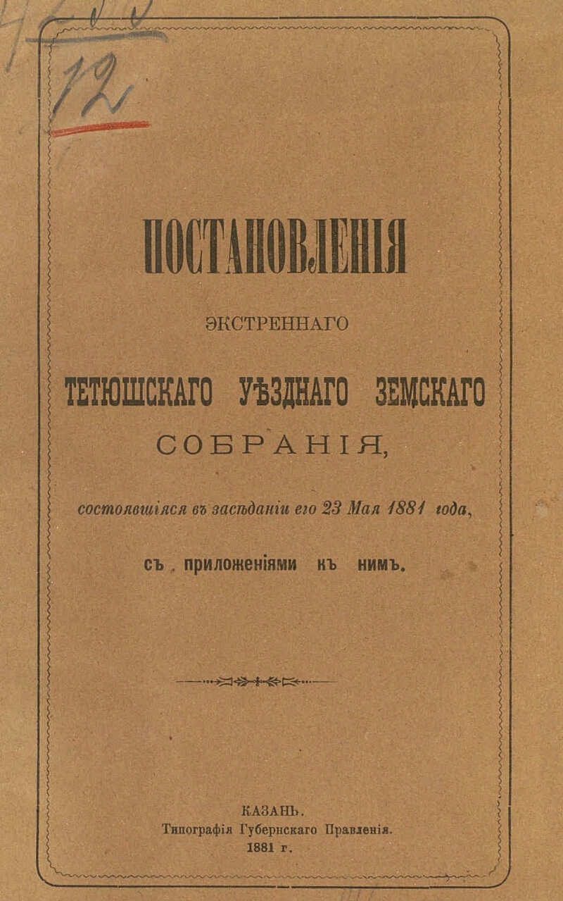 Описание Тетюшское уезд. земское собрание Журналы Тетюшского уездного земского собрания... .- Казань , [1866]-1915 .- 24 см rus экстренного... 23 мая 1881 года: с прил. к ним .- Тип. Губ. правления , 1881 .- 54, III с. . ББК 63.3(2)5-334я5ББК 63.3(2)522-334я5 Источник: РГБХранение: РГБ Издательство Тип. Губ. правления Объект в каталогах Россия в кон. XVII в. Россия в кон. 50-х