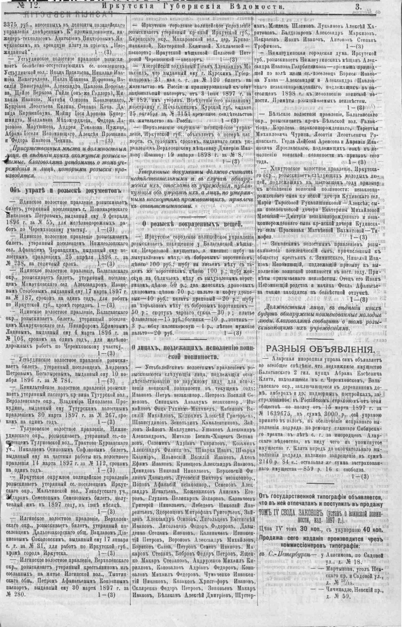 Иркутские губернские ведомости. 1898, № 12 (25 марта)