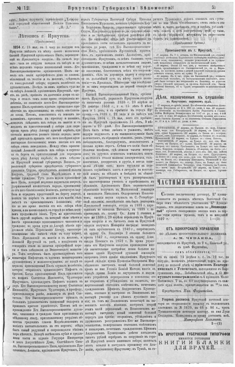 Иркутские губернские ведомости . - Иркутск : Иркутское губернское правление , 1857-