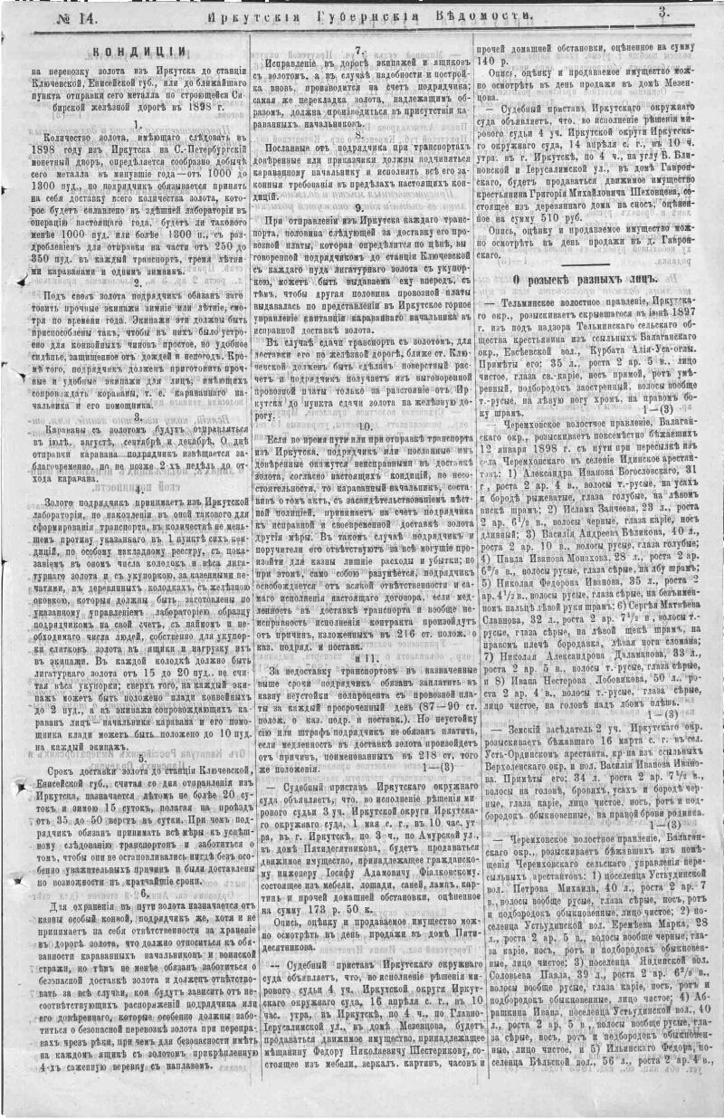 Иркутские губернские ведомости. 1898, № 14 (8 апр.)
