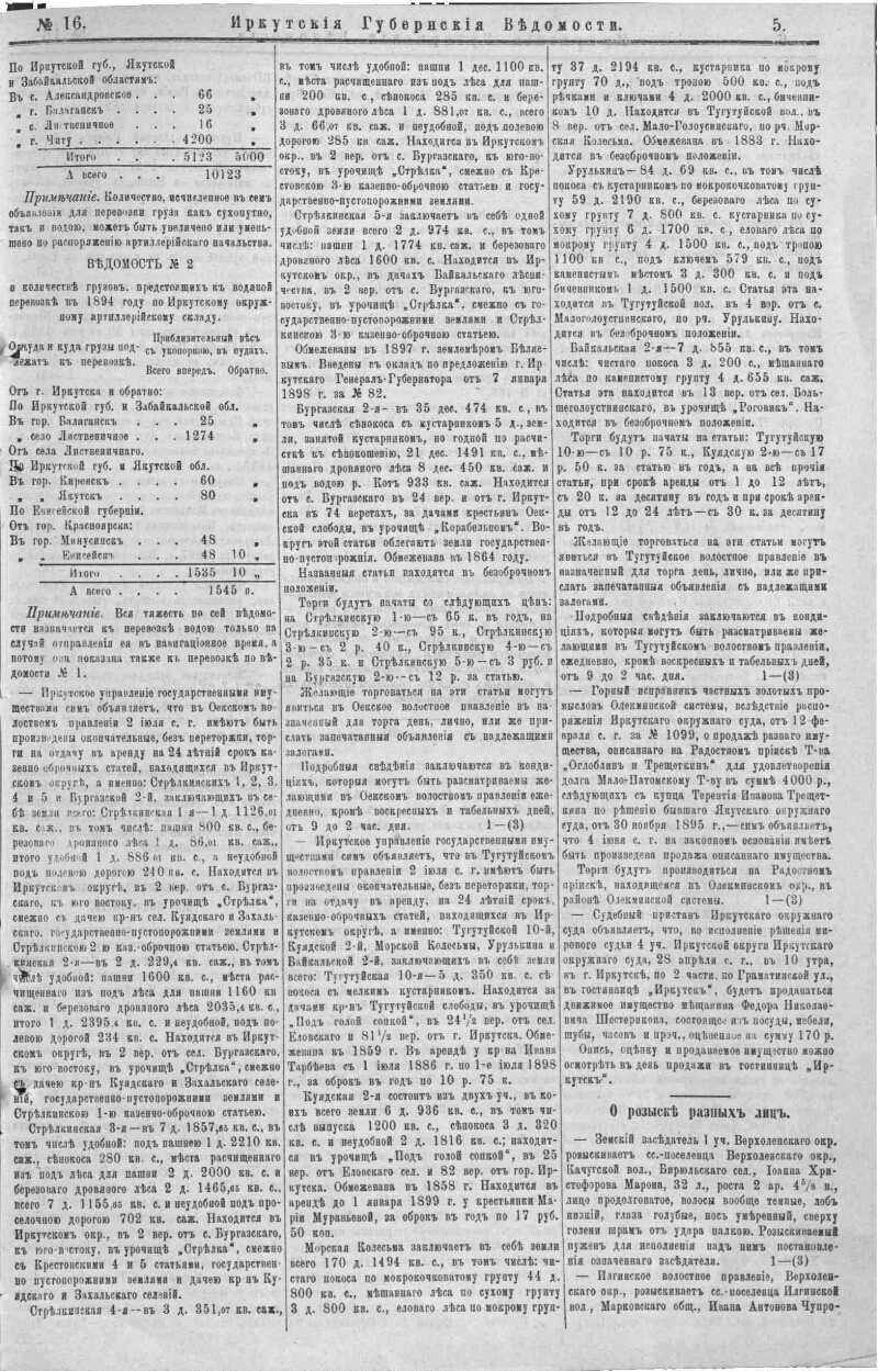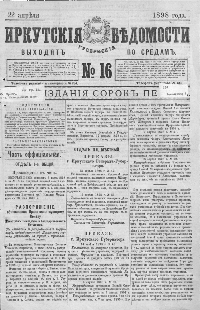 Иркутские губернские ведомости. 1898, № 16 (22 апр.)