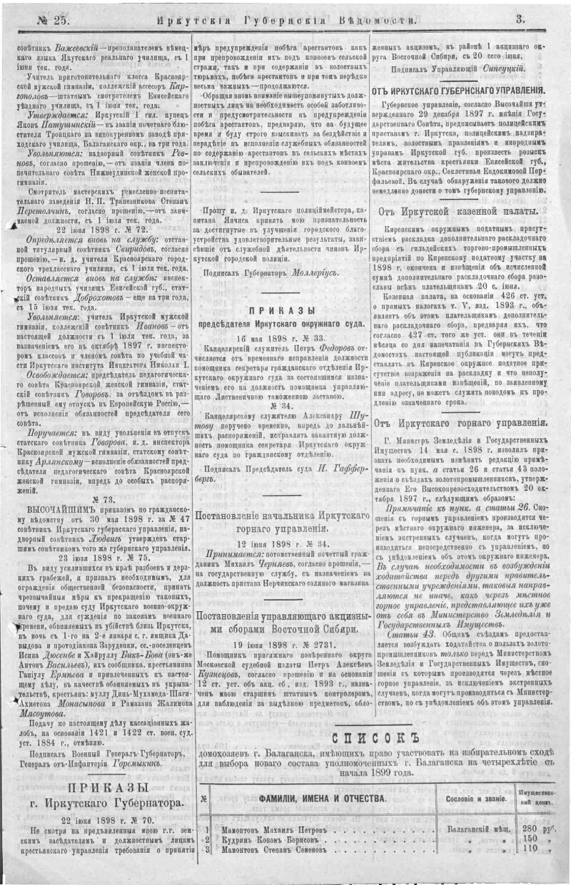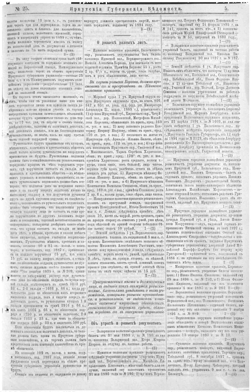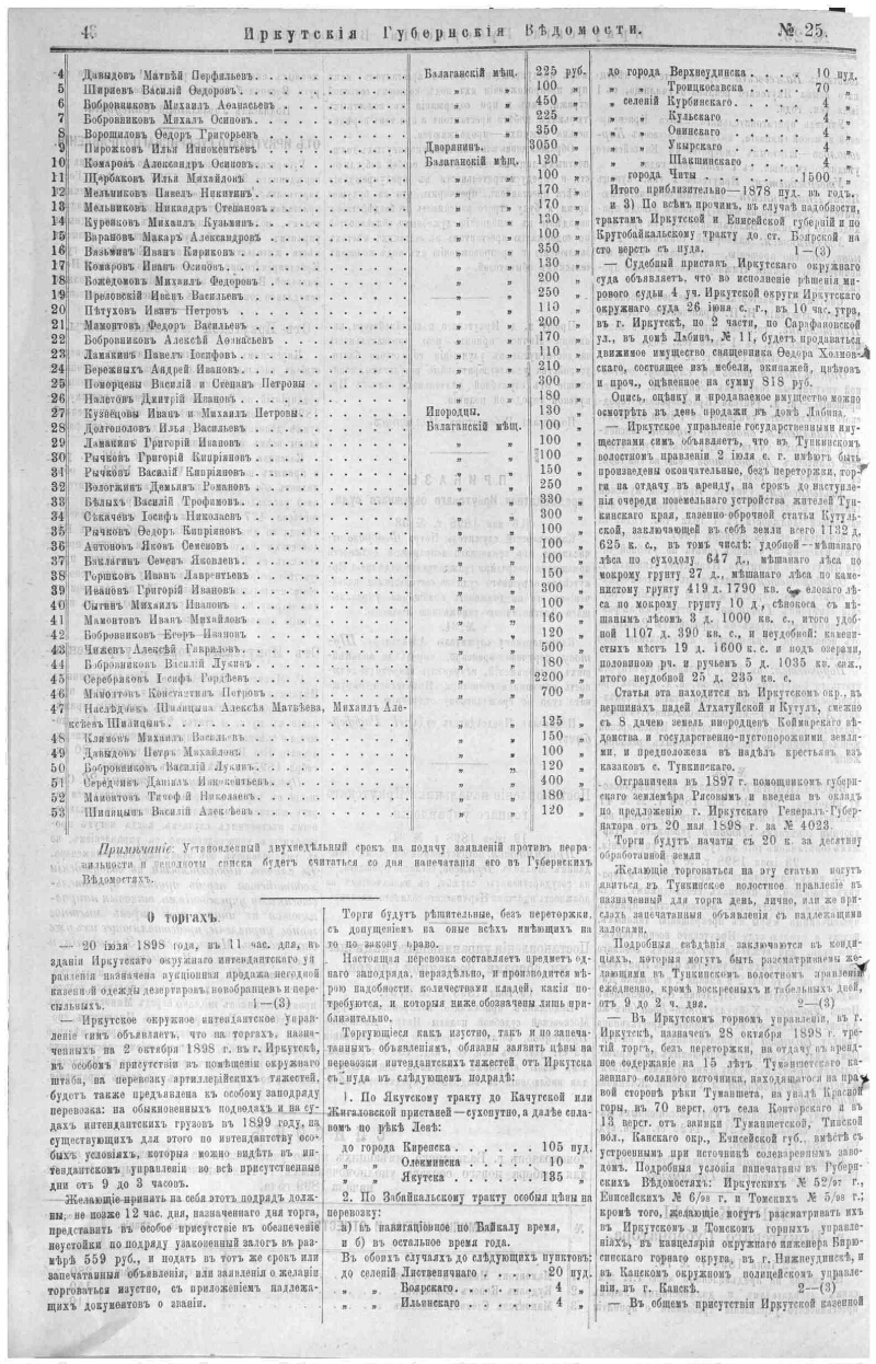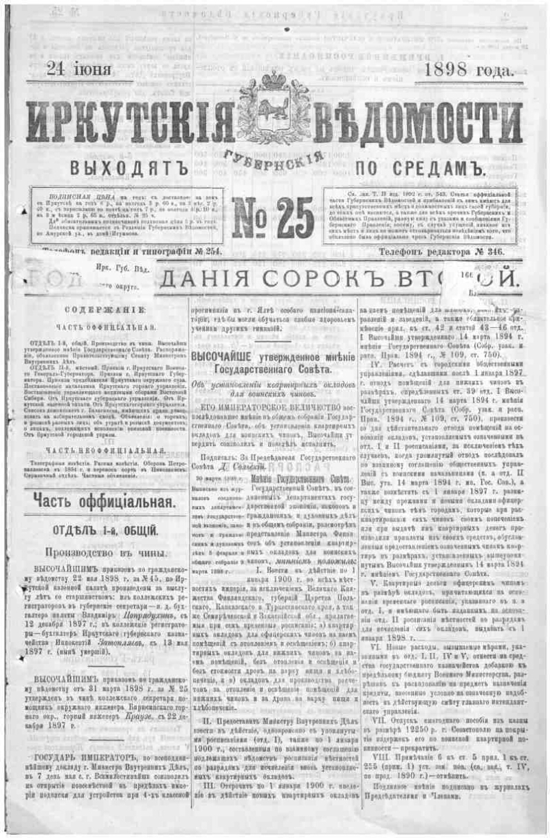 Иркутские губернские ведомости. 1898, № 25 (24 июня)