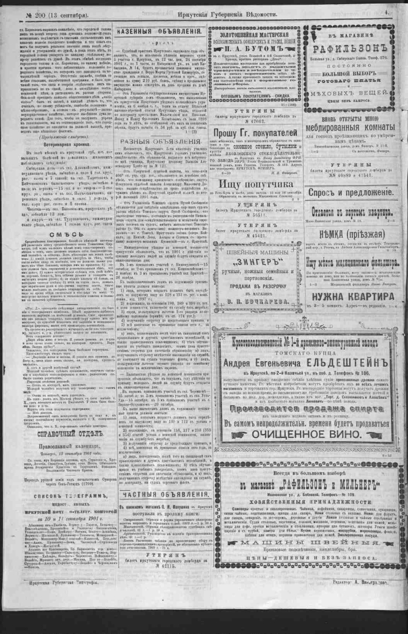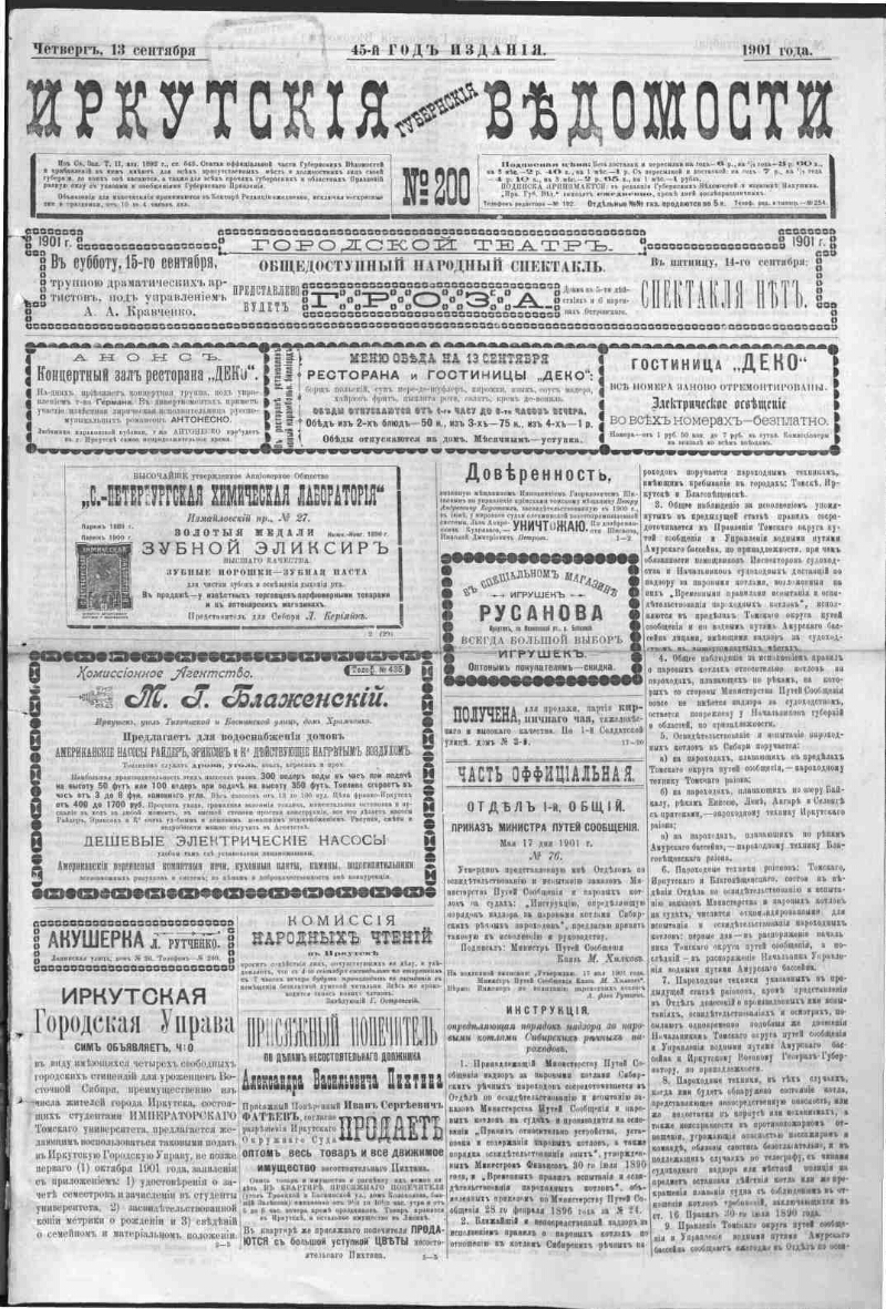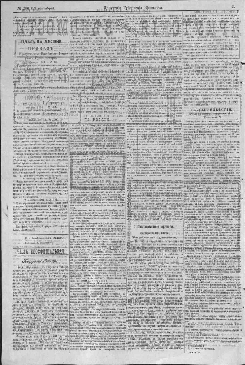 Описание Иркутские губернские ведомости . - Иркутск : Иркутское губернское правление , 1857- 1901, № 200 (13 сент.). - 4 с. . 1. История -- Периодические издания -- Россия. 2. Иркутская губерния. ББК 63.3(28-8Ирк)531я51 Источник электронной копии: Иркутская ОГУНБМесто хранения оригинала: Иркутская ОГУНБ Издательство Иркутское губернское правление Объект в каталогах История В коллекциях Отечественная периодика в фонде Президентской библиотеки → Газеты → И → Иркутские губернские ведомости. Иркутск. → 1901