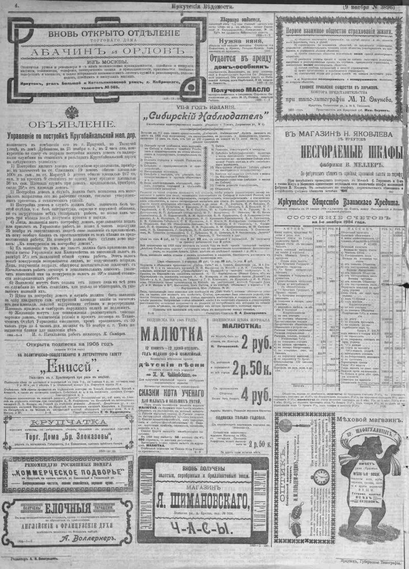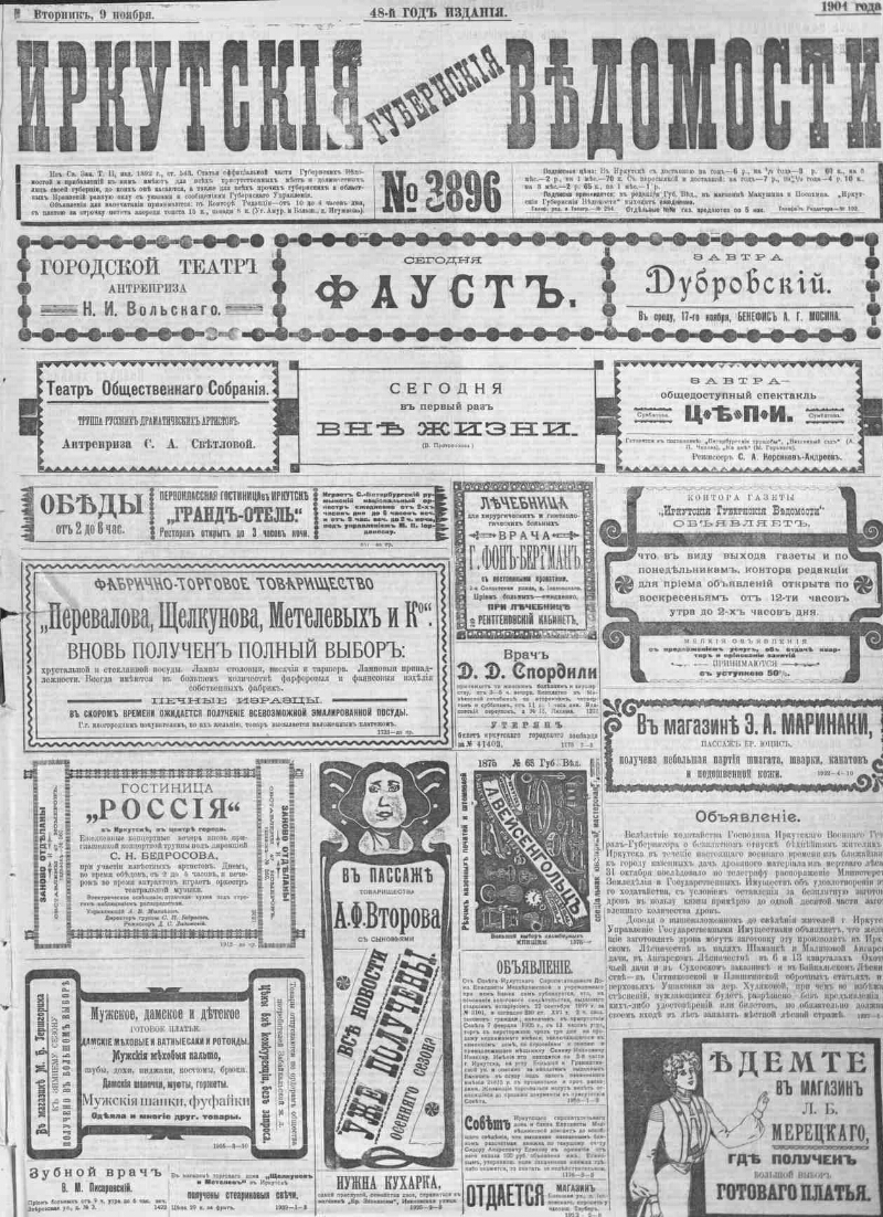 Описание Иркутские губернские ведомости . - Иркутск : Иркутское губернское правление , 1857- 1904, № 3896 (9 нояб.). - 4 с. . 1. История -- Периодические издания -- Россия. 2. Иркутская губерния. ББК 63.3(28-8Ирк)531я51 Источник электронной копии: Иркутская ОГУНБМесто хранения оригинала: Иркутская ОГУНБ Издательство Иркутское губернское правление Объект в каталогах История В коллекциях Отечественная периодика в фонде Президентской библиотеки → Газеты → И → Иркутские губернские ведомости. Иркутск. → 1904