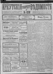 Описание Иркутские губернские ведомости . - Иркутск : Иркутское губернское правление , 1857- 1905, № 4110 (13 июля). - 4 с. . 1. История -- Периодические издания -- Россия. 2. Иркутская губерния. ББК 63.3(28-8Ирк)532я51 Источник электронной копии: Иркутская ОГУНБМесто хранения оригинала: Иркутская ОГУНБ Издательство Иркутское губернское правление Объект в каталогах История В коллекциях Отечественная периодика в фонде Президентской библиотеки → Газеты → И → Иркутские губернские ведомости. Иркутск. → 1905