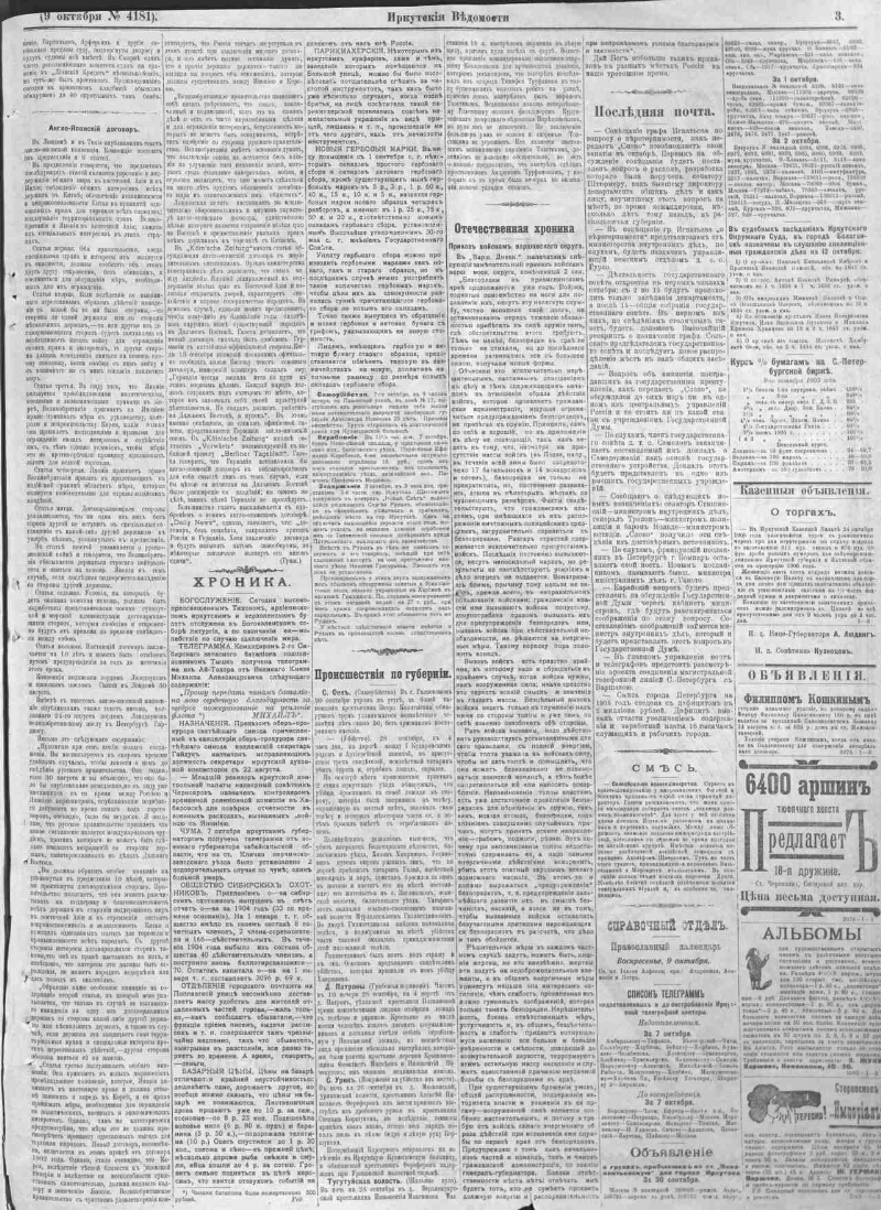 Описание Иркутские губернские ведомости . - Иркутск : Иркутское губернское правление , 1857- 1905, № 4181 (9 окт.). - 4 с. . 1. История -- Периодические издания -- Россия. 2. Иркутская губерния. ББК 63.3(28-8Ирк)532я51 Источник электронной копии: Иркутская ОГУНБМесто хранения оригинала: Иркутская ОГУНБ Издательство Иркутское губернское правление Объект в каталогах История В коллекциях Отечественная периодика в фонде Президентской библиотеки → Газеты → И → Иркутские губернские ведомости. Иркутск. → 1905
