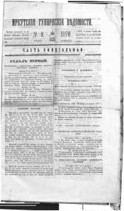 Описание Иркутские губернские ведомости . - Иркутск : Иркутское губернское правление , 1857- 1870, № 8. - 8 с. . 1. История - Периодические издания - Россия ББК 63.3(28-8Ирк)522я51 Источник копии: Иркутская ОГУНБМесто хранения оригинала: Иркутская ОГУНБ Издательство Иркутское губернское правление Объект в каталогах История В коллекциях Отечественная периодика в фонде Президентской библиотеки → Газеты → И → Иркутские губернские ведомости. Иркутск. → 1870